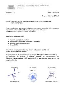 ΠΡΟΣΚΛΗΣΗ ΤΑΚΤΙΚΗΣ ΓΕΝΙΚΗΣ ΣΥΝΕΛΕΥΣΗΣ 04-12-2025